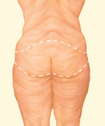 - Buttocks, groin and thighs, causing hanging pockets of skin